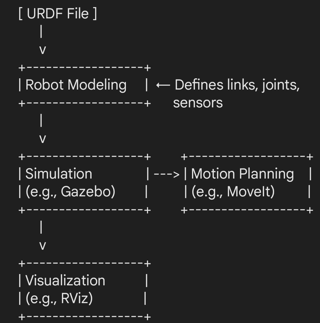 URDF represents your robot as a tree of links and joints, defining physical parts, motion constraints, and inertial properties.